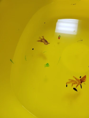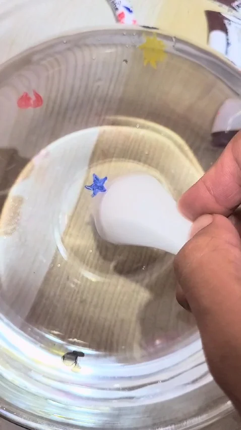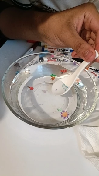 Only a small part of the ink floes in the water, the rest remains glued to the spoon