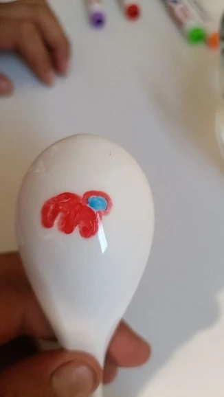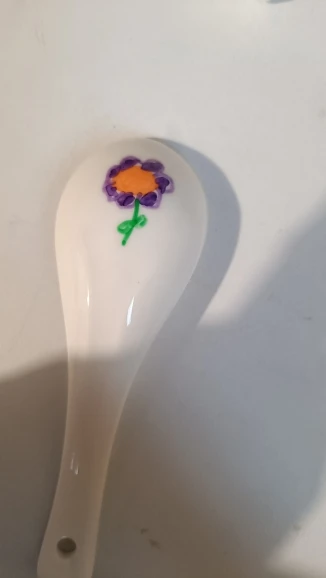 I also did not receive a spoon, although it is in the description. I used a metal one. You have to wait and soak in the water. I need to practice, because the drawing when it comes down, it sticks together. I don’t know if it’s the metal spoon’s fault or my skills.