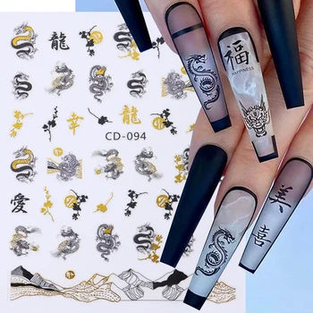 3D Dragon Design Nail Art Stickers Black Red Dragon Slider Decals Chinese Character For Manicure Nail Art Decor New Year Sticker