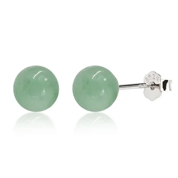 4mm 6mm 8mm Green Jade Earrings for Women, 925 Sterling Silver Needle, Good Luck Jade Jewelry for Women Men Birthday Anniversary