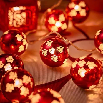 New Year’s Decor Chinese Fu Character Christmas Ball LED Lights String Living Room Large Red Spring Festival New Year Supplies
